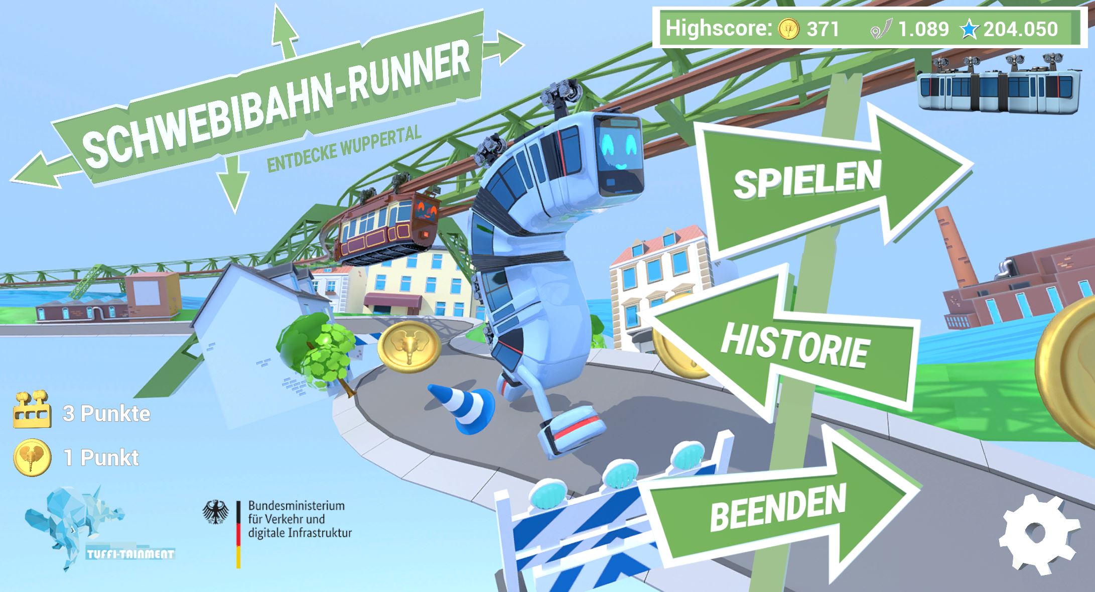 Schwebibahn-Runner ist ein einfacher Endless Runner, der in Zukunft noch um neue Streckenabschnitte und Hindernisse erweitert wird.